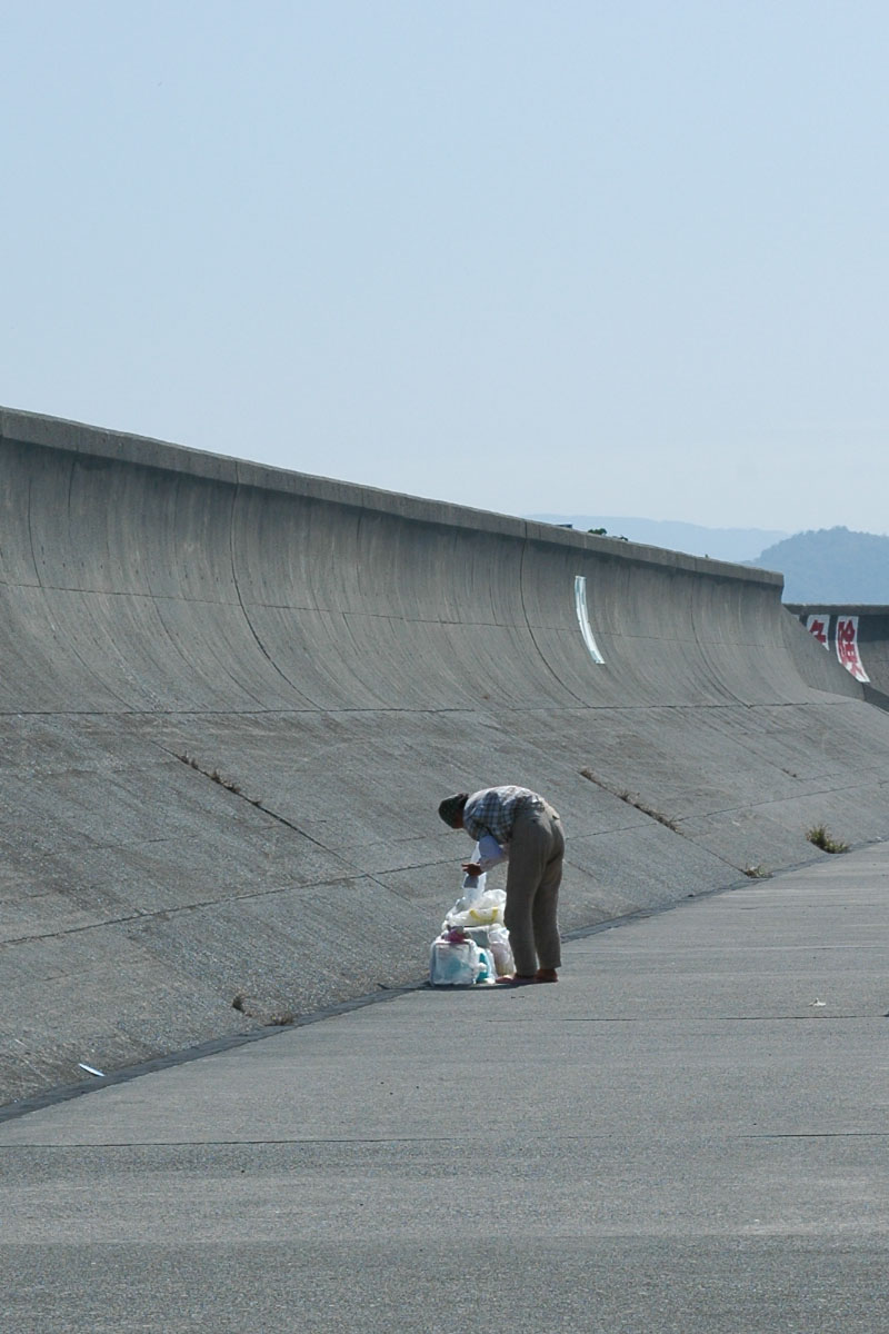海辺には色んな人たちが住んでいる。松林の中に寝る場所を作っている人もいるし、廃車を家にしている人もいる。そんな中で、落ち着いて海を眺めている女性の人の荷物にふと目がとまる。ビニール袋と紙袋をまとめて、その近くで海を眺めてる。紙袋の一番上にはくまのぬいぐるみが入ってる。