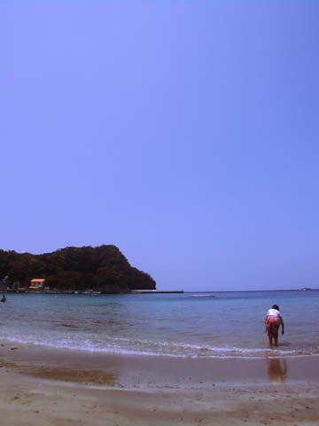 スカートをたくしあげて、海に入っている。何を拾っているのかなぁ?手に掴もうとしているものを見てみたい。(リンク